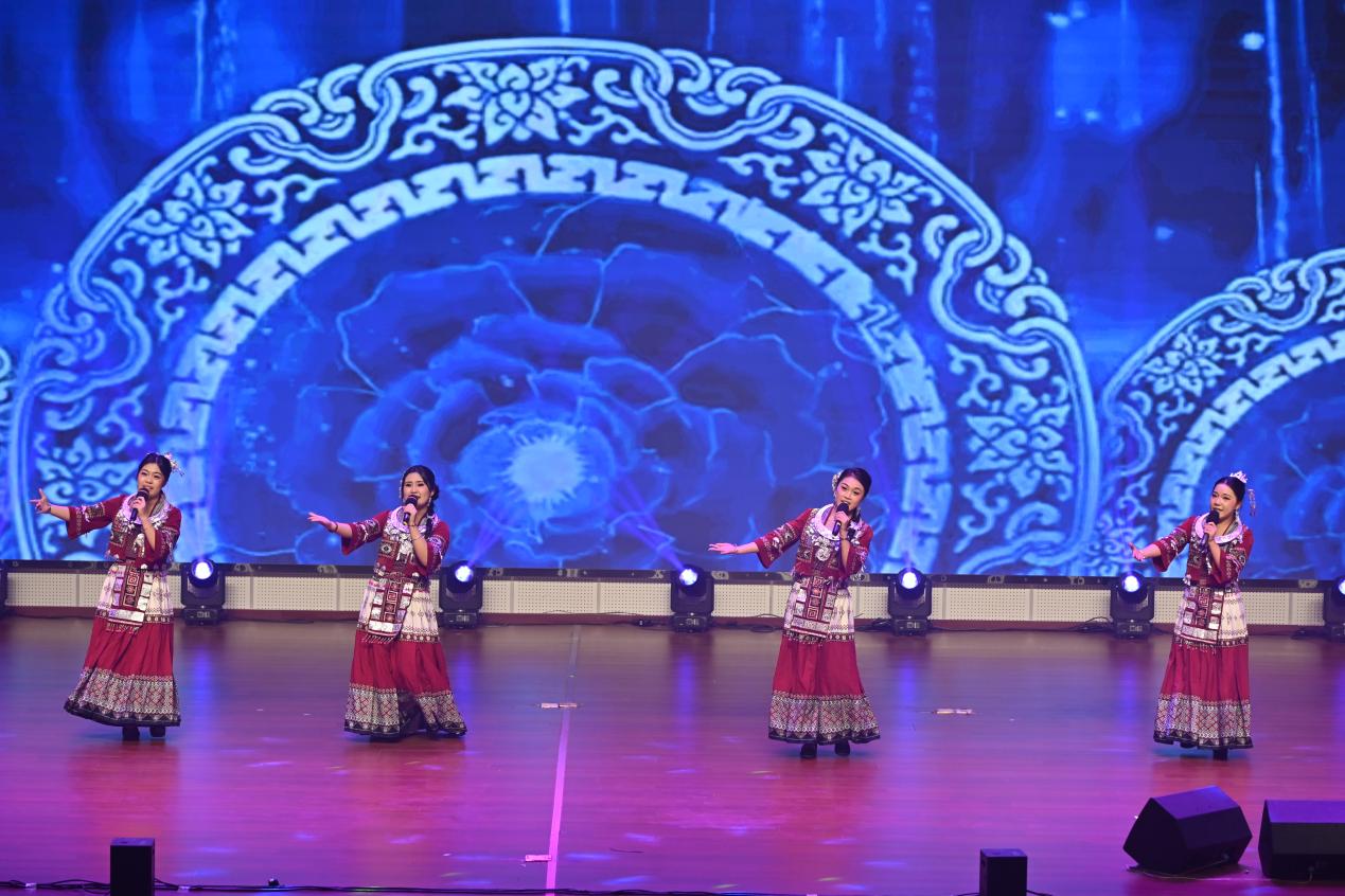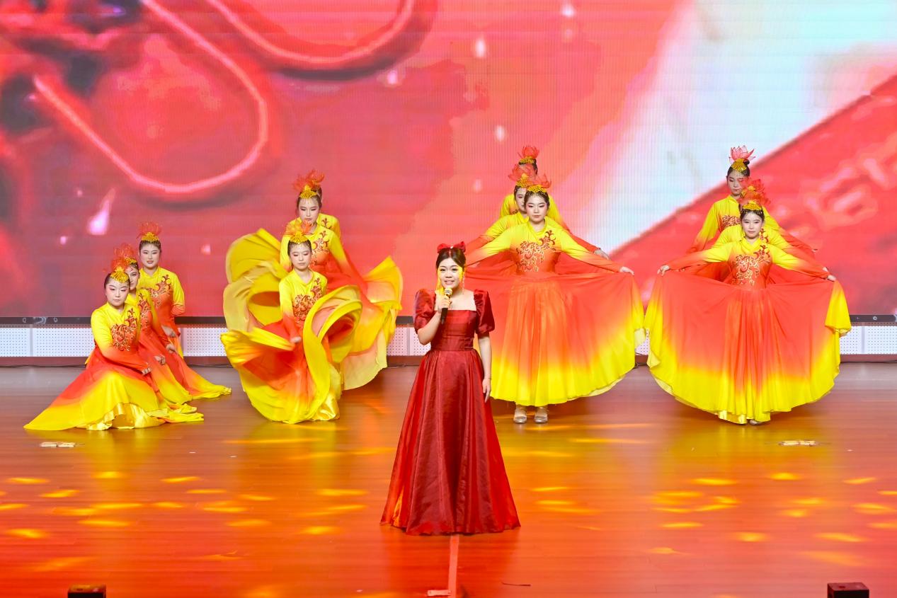“终章·同心筑梦”篇章里满是温情与力量。歌曲《弥渡山歌》,用婉转的民歌韵律传递民族风情,让观众沉浸在悠扬旋律中;朗诵《铁骨军魂》,字字铿锵道出家国情怀,激昂的语调引得台下掌声雷动;舞蹈《一起跳舞吧》,以动感节奏和欢快舞步点燃全场,台上台下互动不断,勾勒出湖西师生携手筑梦的美好画面。