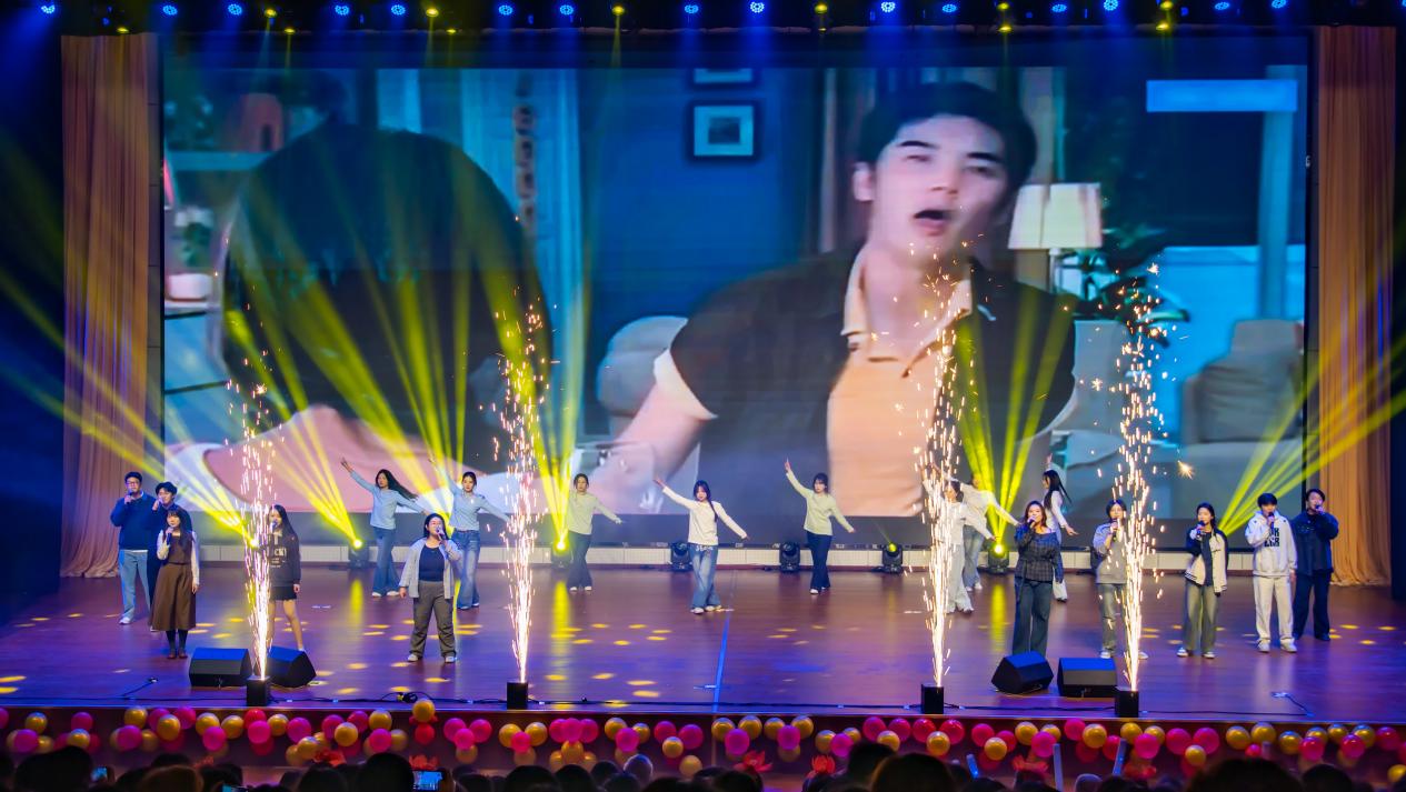 “华章·灼灼芳华”篇章节目亮点纷呈。梁惠书记倾情献唱《命运不是辘轳》,豪迈唱腔点燃全场热情;歌曲串烧《童年回响机》,改编演绎经典童年曲目,熟悉旋律唤醒全场的童年记忆;话剧《风声》,凭借细腻演技展现剧情的紧张反转,让观众沉浸式感受故事魅力;《甄嬛传》配音秀中,表演者们用百变声线还原经典角色,惟妙惟肖的演绎逗得全场笑声不断;舞蹈《铭记》,以肢体动作诠释青春里的坚守与感动,画面动人又戳心。